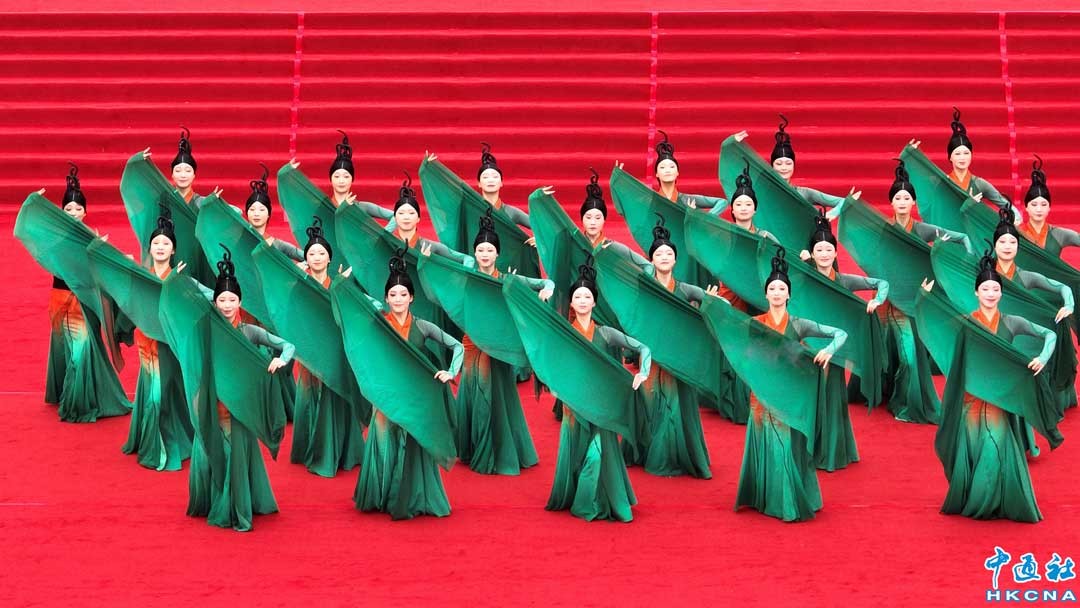6月21日,“中國端午 詩意宜昌”2023屈原故里端午文化節在湖北省宜昌市秭歸縣屈原故里文化旅遊區盛大開幕。圖為開幕式上文藝表演舞蹈《橘頌》。 香港中通社圖片