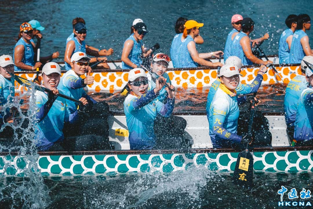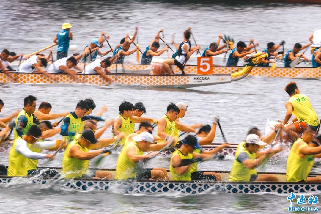 6月24日,闊別四年的香港國際龍舟邀請賽在維港一連兩日舉行。此次賽事共設有17項比賽,超過160支來自10個國家和地區的隊伍參賽。 (香港中通社記者 許其皓攝)