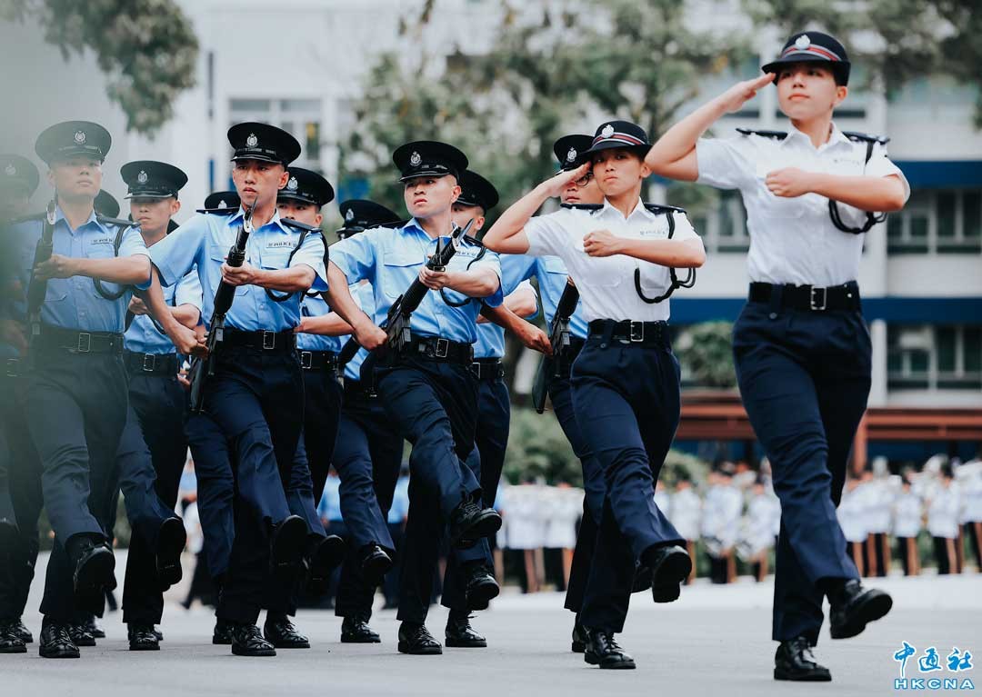 6月24日,香港警察學院舉行結業會操,警務處副處長袁旭健檢閱畢業學員。他表示,今屆有32名見習督察及110名學警畢業。(香港中通社記者 曹文毓攝)
