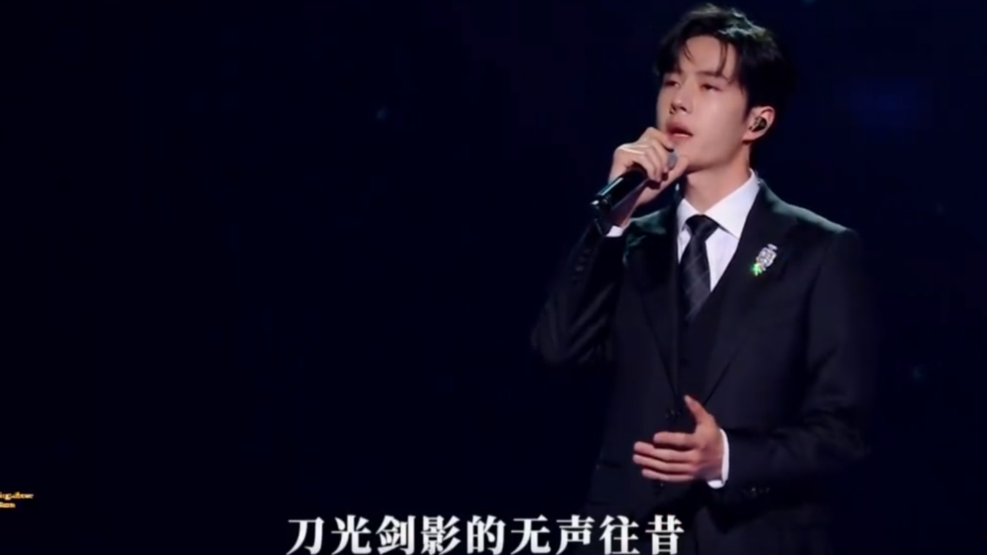 (電影頻道視頻截圖) 內地頂流王一博則帶來電影《無名》的主題曲《無名》,致敬所有無名戰線的奉獻者。其深情演繹贏得台下觀眾陣陣掌聲。