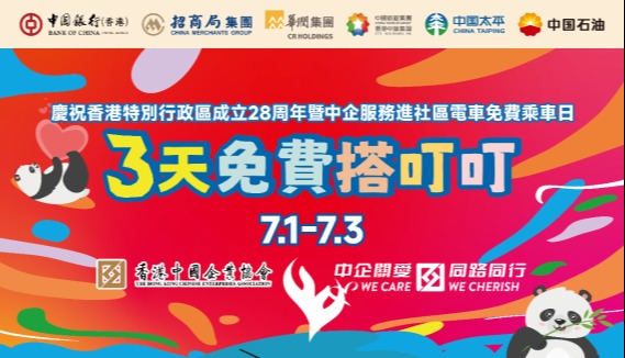 中企請全港市民免費搭電車同慶特區成立26周年分享到: