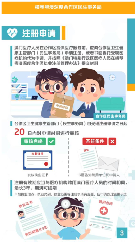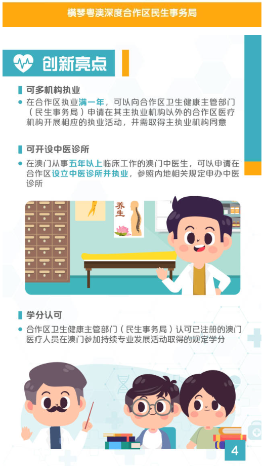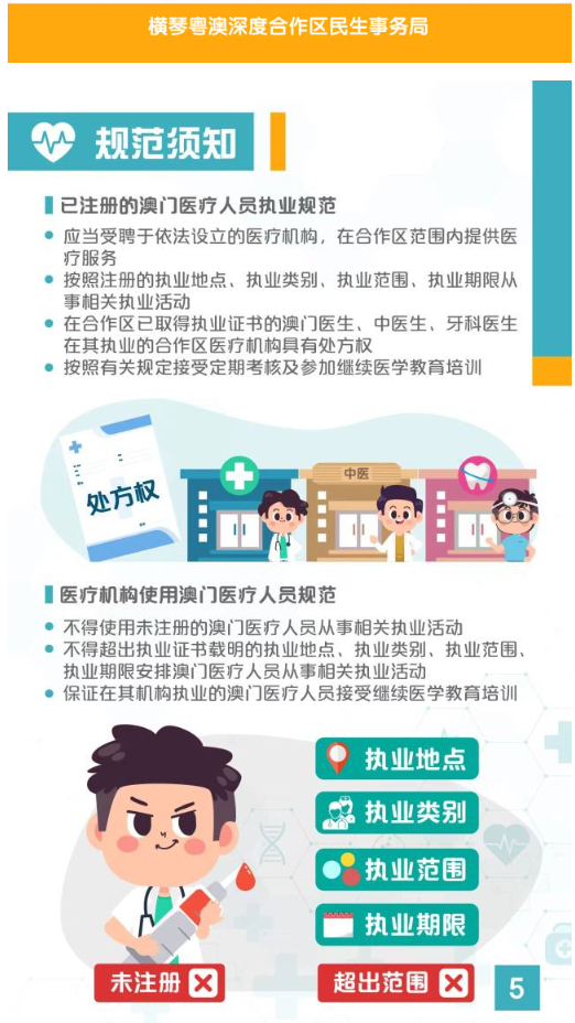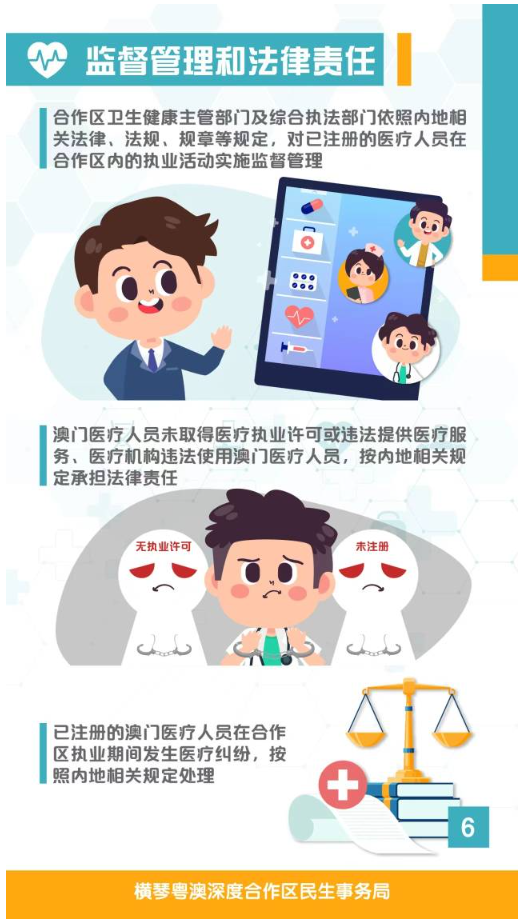 今日起,15類澳門醫療人員在橫琴可免試多點執業(多圖讀政策)香港新聞網8月1日電 15類澳門醫療人員在橫琴粵澳深度合作區(下稱“合作區”)醫療機構可依規執業!法規由珠海市十屆人大常委會第十四次會議審議通過,自2023年8月1日起施行。這是合作區繼第一部綜合性法規《橫琴粵澳深度合作區發展促進條例》後出台的第一批專項法規,是用足用好珠海經濟特區立法權開展“小切口”立法創新的首批成果。 據瞭解,珠海市人大常委會、合作區執委會5月31日召開新聞發佈會,公佈《澳門特別行政區醫療人員在橫琴粵澳深度合作區執業管理規定》(下稱《醫療人員管理規定》)。 “該法規明確,已註册的澳門醫療人員在合作區執業滿一年,可以向合作區衛生健康主管部門申請在其主執業機構以外的合作區醫療機構開展相應的執業活動,實現澳門醫療人員的多機構執業。”澳門科大醫院心諟科醫生、澳門醫學專科學院心諟科院士梁文健表示,“此前澳門醫療人員在內地是無法實現多機構執業的。這次法規進一步擴展了我們服務的範圍,同時還能密切與內地醫療團隊合作交流,實現共同研發。” 據介紹,《醫療人員管理規定》在探索對澳醫療合作方面實行更加靈活、開放的規定,允許具有澳門居民身份、持有澳門有效醫療人員資格認可證書并屬於澳門《醫療人員專業資格及執業註册制度》適用範圍的15類醫療人員,在澳門從事相關執業活動滿兩年後,以及不存在內地法律、行政法規規定不得從事醫療衛生服務的情形,經註册并取得執業證書便可在合作區範圍內提供與其資格認可證書相符的醫療服務,無需再通過內地資格考試或短期行醫、短期執業制度申請。 珠海市人大常委會法制工作委員會主任雍靈表示,法規將內地現行法律法規中未涉及的脊醫、物理治療師、職業治療師、語言治療師等納入其中,進一步鼓勵和引導高水平澳門醫療人員來合作區執業。 該法規明確,在合作區取得執業證書的澳門醫生、中醫生和牙科醫生在其執業的合作區醫療機構具有處方權。在澳門從事五年以上臨床工作的澳門中醫生可申請在合作區設立中醫診所,較此前有關法律法規規定,對申請人是否為永久性居民、是否取得內地醫師資格證不作要求。 此外,該法規還在多機構執業、繼續醫學教育培訓等方面提供更多便利和保障。值得關注的是,對於醫療機構使用未註册的澳門醫療人員或超出註册的執業地點、執業類別、執業範圍、執業期限安排澳門醫療人員從事其他執業活動等情形,以及澳門醫療人員違法提供醫療服務、發生醫療糾紛等所產生的相關法律責任一律按照內地有關規定處理。 合作區執委會副主任吳子健認為,隨著琴澳多元產業不斷發展,合作區大健康產業加快布局,醫療事業穩步發展,勢必吸引更多境內外優質醫療機構落地橫琴,對優秀醫療人員需求將大幅增加。同時隨著琴澳融合的不斷深入,“澳門新街坊”亦即將落成入住,滿足澳門居民對優質醫療服務的需求成為當前最關切的問題之一。下一步,合作區有關部門將出台配套的規範性文件,明確操作規程、申請材料等內容,保障法規順利落地實施。其中,合作區將配套上線“橫琴粵澳深度合作區醫療管理系統”,進一步加強對澳門醫療人員在合作區執業的管理與監督。