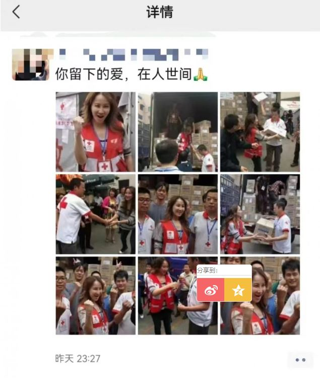 圖源:上游新聞 據上游新聞報道,梅女士透露,這9張照片是2013年在中國紅十字會成都備災中心拍攝的。“當時四川廬山發生了地震,李玟親自帶了一卡車奶粉、餅乾等救災物資,前往災區獻愛心。” 梅女士回憶,李玟沒有一點明星架子,跟其他志願者一起在卡車上爬上爬下、又搬又抬,將共計4000箱奶粉、餅乾進行轉運。