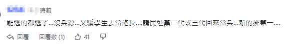 還有人質疑:“標準越低代表缺很大,改天會不會能動的就要當(兵)?”