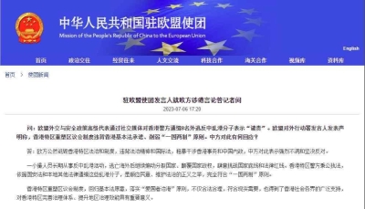 香港新聞網7月7日電 香港特區政府昨晚(6日)發表聲明,強烈反對歐盟對重塑區議會的失實評論,以及對香港特區民主發展的無稽妄議。特區政府強烈敦促歐盟立即停止干涉純屬中國內政的香港事務,並要求歐盟就其聲明中的謬誤作出澄清及致歉。 特區政府發言人指出,第六屆區議會自2020年起,有大量區議員作出違反區議會職能的行為,破壞會議進行,更粗暴地做出不符區議會作為地區諮詢組織職能的事情,甚至將區議會作為挑戰國家主權、鼓吹港獨、危害國安的平台。這些亂象是對特區政府的一響警鐘。必須在制度上堵塞漏洞,把反中亂港分子完全排除於區議會之外,以全面落實“愛國者治港”原則。確保政權掌握在愛國者手中是世界通行的政治原則。