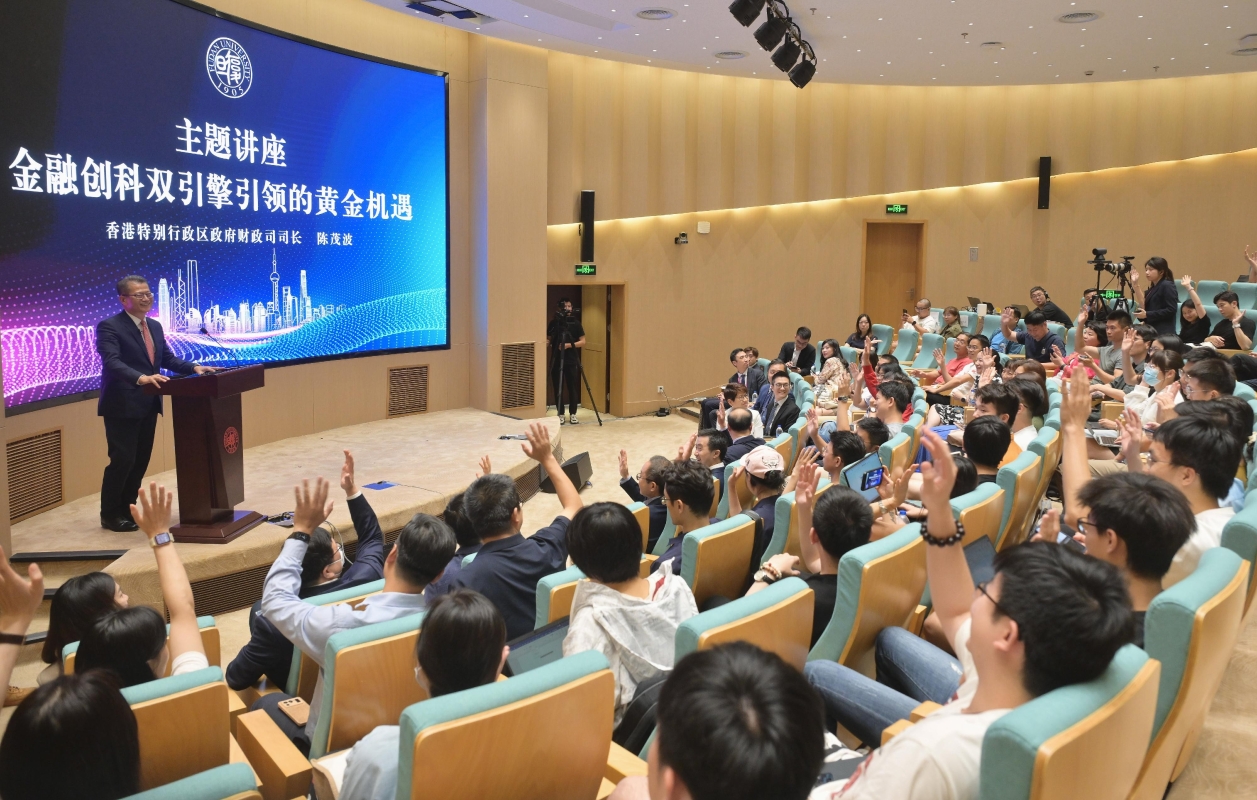 (圖源:政府新聞處) 陳茂波介紹,香港去年底推出“高才通”計劃,至今年6月底,半年時間申請超過91000宗,批出超過54000宗。他稱,復旦大學的同學、校友亦是“高才通”很希望吸引過來的,所以在這方面,歡迎大家考慮。