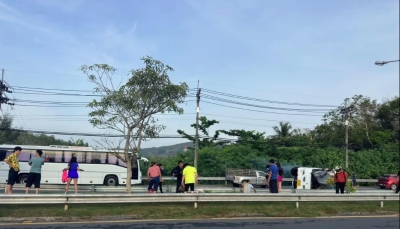 香港新聞網7月10日電 泰國時間7月9日14時,一輛車牌號為30-2297的旅遊巴士在前往芭提雅的途中發生了翻車事故,導致春武裡區的Maka大橋被封鎖。這輛巴士上共載有27名中國遊客和兩名駕駛員。