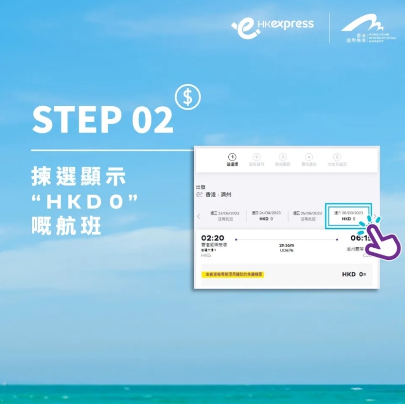 2)如果所選日子所有“HKD 0”的航班已售罄,記得向前或向後揀選,看看就近日子還有沒有“HKD 0”的航班。