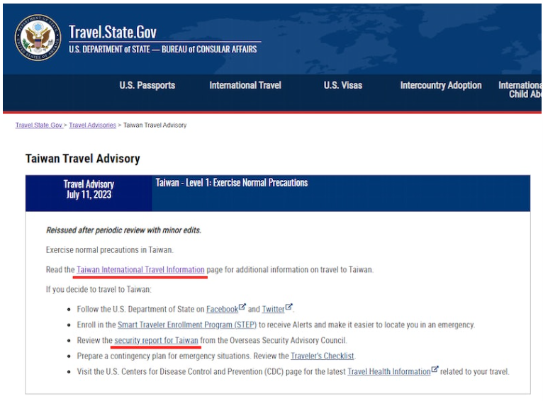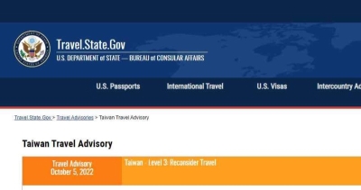 香港新聞網7月12日電 台北消息:美國國務院領務局當地時間11日發布最新版旅遊警示,其中台灣仍保持最安全的“第一級”,主要內容沒有變化,但删除兩處提到“國家”的字眼。