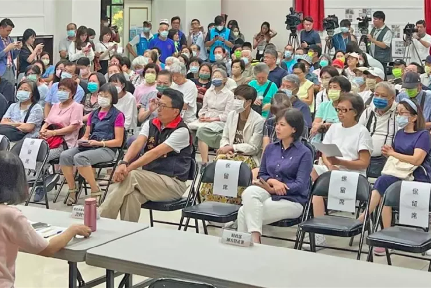 美國在台協會(AIT)台北辦事處的擴建,鎖定內湖中學金湖校區2.6公頃的國中用地,擬變更為機關用地租給AIT使用,12日舉行都市計畫變更草案公開展覽前座談會。圖自台灣中時新聞網 台灣“外交部”與相關單位12日下午於當地舉辦座談會,同樣出席座談會的台北市議員游淑慧透露,說明會選擇在平日下午舉辦,就是不希望太多人參加,因為這時間上班族都還在上班,來的都是老的老、小的小,但還是來了200、300人,會場有坐滿,而且AIT官員也有出席說明會。