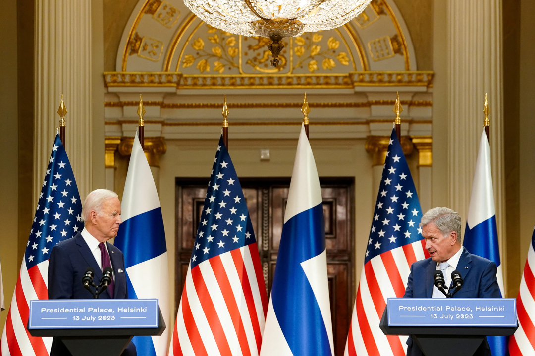2023年7月13日,在赫爾辛基舉行的美國-北歐領導人峰會後,拜登與芬蘭總統紹利·尼尼斯托在聯合新聞發佈會上發表講話。圖自法蘭西24電台配圖 據塔斯社報道,俄總統普京7月4日與俄總理米舒斯京舉行工作會議。米舒斯京表示,俄羅斯經濟正在穩步從制裁和應對其它挑戰中復甦,今年前五個月國內生產總值(GDP)增長0.6%。 米舒斯京還在會議中說,今年5月份俄羅斯經濟同比增長5.4%,預計全年將增長2%以上。 據英國《金融時報》12日消息,七國集團(G7)國家達成一項向烏克蘭提供長期安全保障的聯合框架協議,該協議旨在將烏克蘭變成抵禦俄羅斯“侵略”的軍事堡壘。烏克蘭總統澤連斯基稱,這一承諾將有助於烏克蘭加入北約。 俄總統新聞秘書佩斯科夫當地時間12日表示,向烏克蘭提供任何安全保證都是極其錯誤且非常危險的。佩斯科夫表示,向烏克蘭提供安全保障實質上就是“企圖危害俄羅斯的安全”,并稱“這在中長期,甚至短期內,都會造成非常消極的後果”,而且這些後果“將使歐洲在未來許多年變得更加危險”。佩斯科夫補充說,俄方對有關向烏提供安全保障的議題持消極態度,并希望對此表示反對的聲音能够被聽到。(完) 【編輯:許豐悅】
