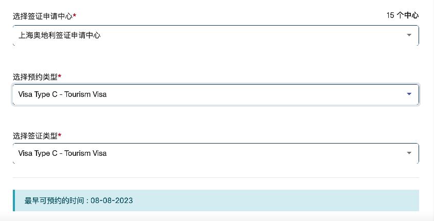 上海奧地利簽證申請中心能預約到8月上旬送簽,算上7-10個工作日的簽證辦理周期,尚能趕在暑期末尾出行。