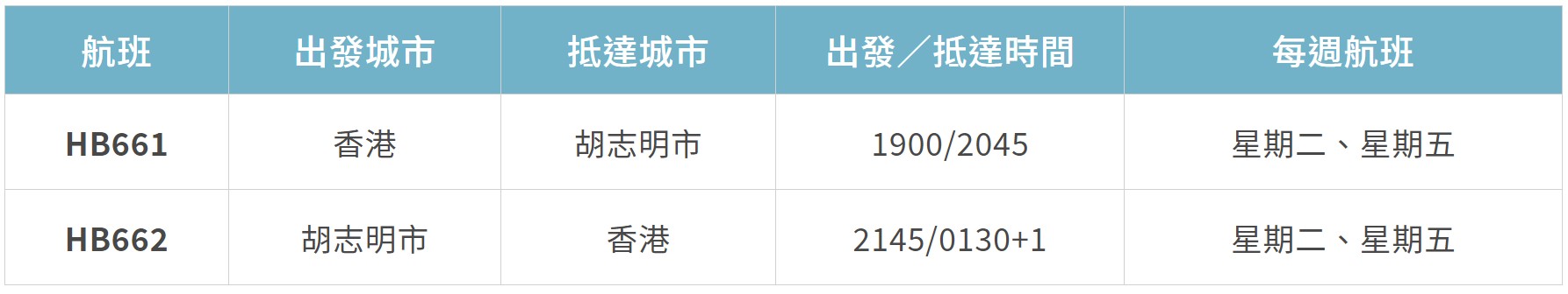 香港新聞網7月20日電 大灣區航空的香港至越南胡志明市定期航班本周二(18日)首航,標誌著其飛行網絡已擴展至6個航點。此新航線現一星期2天提供往返香港與胡志明市(新山一國際機場,SGN)的航班。