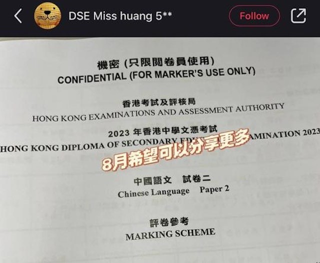 疑DSE閱卷員小紅書洩機密文件分享到: