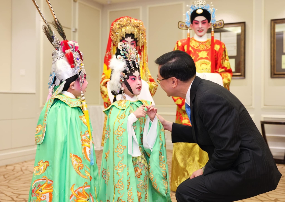 一眾小演員們年紀輕輕。李家超FB圖片 他又指,表演不止有來自香港的演員參與,更邀請了5位20多歲來自新加坡和香港兩地的年輕音樂家擔綱編奏整晚表演的樂曲,前者負責演奏揚琴、大提琴和二胡,後者負責編曲、拉奏小提琴和琵琶。這糅合中西樂器的新晉星港組合,不單展現粵曲創新、靈活和優美的一面,更是兩地文化藝術交流的範例之一。 李家超強調,特區政府會繼續積極打造香港成為中外文化藝術交流中心,主動爭取和把握不同機會,將粵劇等不同中華文化藝術推向世界,加強與海外地區的藝術文化交流,讓中華文化藝術表演項目能夠在國際舞台上發熱發亮,為中華文化爭光,不負中央期望。