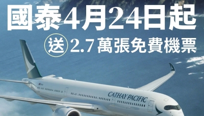 附鏈接 | 國泰航空送3.6萬張台灣往返香港機票 中午12時起登記分享到:
