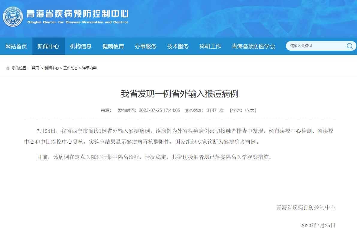 青海發現一例省外輸入猴痘病例,在密接排查中發現