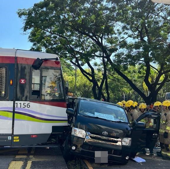 香港新聞網7月27日電 今早(27日)近9時,天水圍天瑞路天瑞站有輕鐵撞客貨車。現場消息稱,客貨車上有3人受傷,而輕鐵上則有1人受傷,幸全部輕傷。大批消防員在場協助,傷者由救護車送院治理。受事故影響,輕鐵服務受阻。