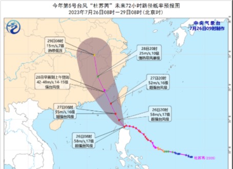 香港中通社資料圖片。 在下午5時,“杜蘇芮”集結在香港以東約540公里,即在北緯21.5度,東經119.3度附近,預料向西北偏北移動,時速約18公里,大致移向福建南部沿岸地區。天文台表示,按照現時預測,“杜蘇芮”會在明早最接近本港,在香港以東400公里左右掠過。屆時“杜蘇芮”亦會登陸福建南部,移入內陸並逐漸減弱,一號戒備信號會在今晚至明早維持,改發更高熱帶氣旋警告信號的機會不大。海面有湧浪,市民應遠離岸邊並停止所有水上活動。 另外,受“杜蘇芮”的外圍下沉氣流影響,華南持續極端酷熱。香港今日下午氣溫普遍上升至35度以上,部分地區氣溫達38度,而高溫亦觸發驟雨和狂風雷暴。明日本港將持續酷熱,局部地區有驟雨及雷暴。天文台預料一股活躍西南氣流會在明晚至星期六影響廣東沿岸,為該區帶來驟雨及狂風雷暴,初時雨勢較大。下週初至中期天色較為明朗,亦有幾陣驟雨。 (完) 【編輯:孟宜君】