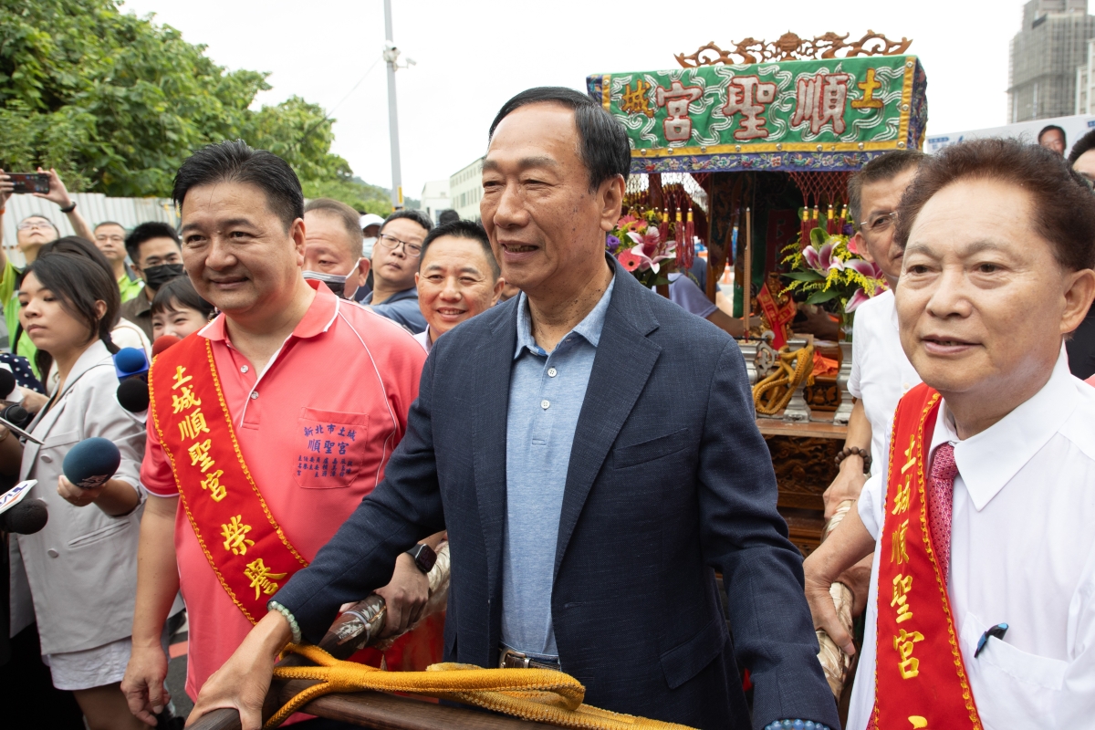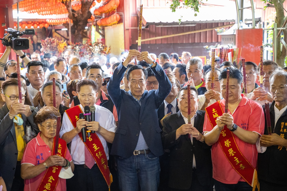 郭台銘到新北市土城區順聖宮上香祈福。香港中通社圖片 4月5日訪美行程結束後,郭台銘返台隨即舉行記者會,宣布爭取國民黨提名參選2024年台灣當局領導人。為了顯示誠意,郭台銘為4年前參加國民黨初選後負氣離開致歉,並表達若未獲提名也會為藍營助選。 在接下來的一段時間內,郭台銘跑遍全台積極造勢,不時就重大議題發表政見,也接連拜會國民黨地方大佬尋求支持。國民黨5月17日公布的人選仍舊是新北市長侯友宜,努力付諸東流的郭台銘,也“大度”強調會力挺侯友宜。 與言語上的堅定支持不同,郭台銘在國民黨公布人選後熱情不再,沒有出席任何一場侯友宜的造勢活動,有意無意間在淡化與國民黨中央、與侯友宜的關係。