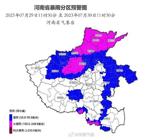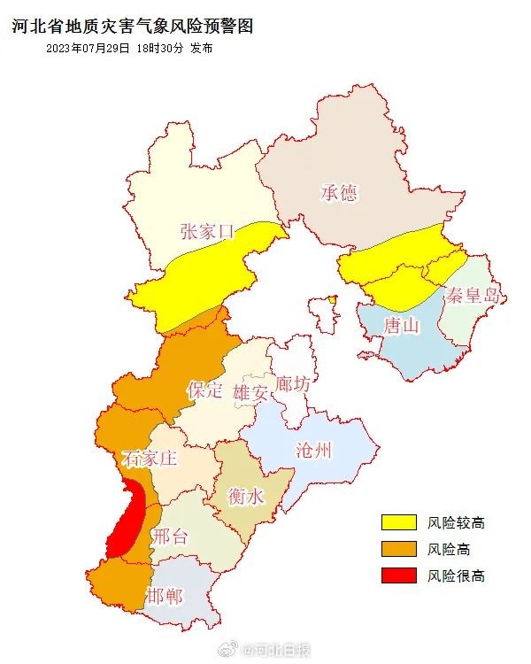 29日18時30分,河北省自然資源廳和河北省氣象局聯合發佈地質災害氣象風險預警。 自7月29日20時至7月30日20時,石家莊市(元氏縣、贊皇縣、井陘縣)、邢台市(臨城縣、內丘縣、沙河市、信都區)、邯鄲市(武安市)發生崩塌、滑坡、泥石流等地質災害風險很高(紅色預警);張家口市(涿鹿縣、蔚縣)、保定市(淶水縣、淶源縣、易縣、阜平縣、順平縣、唐縣、曲陽縣、徐水區、滿城區)、石家莊市(平山縣、靈壽縣、行唐縣、高邑縣、鹿泉區、井陘礦區)、邯鄲市(涉縣、磁縣、峰峰礦區、永年區、叢台區、邯山區、復興區、冀南新區)發生崩塌、滑坡、泥石流等地質災害風險高(橙色預警);承德市(承德縣、寬城滿族自治縣、興隆縣、平泉市、鷹手營子礦區)、張家口市(赤城縣、懷安縣、懷來縣、下花園區、陽原縣、宣化區)、唐山市(遷西縣、遵化市、遷安市、豐潤區、玉田縣、灤州市)、秦皇島市(青龍滿族自治縣)、廊坊市(三河市)發生崩塌、滑坡、泥石流等地質災害風險較高(黃色預警)。上述地區有關責任單位和監測人員要做好地質災害監測、巡查、轉移避險等防範工作。 備戰“杜蘇芮”,河南全面進入防汛應急狀態 今年第5號台風“杜蘇芮”已於28日在福建晉江登陸。受台風影響,預計7月29日至8月1日,河南部分地區將出現大到暴雨、大暴雨,7月29日11時30分河南省氣象台昇級發佈暴雨黃色預警,預計7月29日11時30分至30日11時30分,黃河以北和洛陽、鄭州、開封、商丘、平頂山北部、許昌西部、周口東部、駐馬店東部、信陽、南陽東部部分縣市將出現暴雨(50~90毫米),其中安陽、鶴壁、濮陽、新鄉、焦作東部、鄭州中西部、平頂山西北部、許昌西北部、洛陽東北部、南陽東南部、信陽南部部分縣市雨量可達100毫米以上,并伴有雷電、短時強降水(最大小時雨強50-80毫米)、短時大風等強對流天氣。