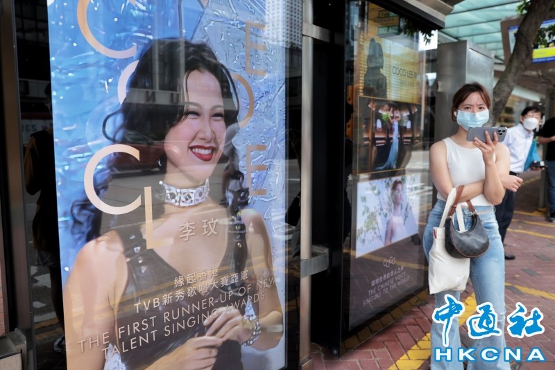 香港中通社圖片 眾多歌迷早已在殯儀館外守候,大部分人身着黑衣,帶着Coco最愛的紫色鮮花和手寫卡片。附近的行人馬路圍欄上,亦有歌迷掛上寫有“仰望星空 是你留下的愛化作星海”“上海歌迷此生不忘CoCo李玟”等字句的橫幅,以表對偶像的無盡追思。 此外,歌迷亦在香港共24個巴士站,購買LED燈箱擺上李玟的海報緬懷偶像。(完) 【編輯:李泺】