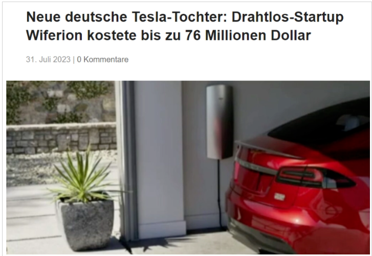 特斯拉又有黑科技?國產車早已布局香港新聞網8月3日電特斯拉斥資超7600萬美元收購無線充電龍頭公司Wiferion,將解決電動汽車的又一問題。無線充電可實現隨停隨充,免去了充電樁插槍的步驟,極大改善了充電體驗。如果在公路上鋪上無線充電的模塊,則可實現電動車行走中充電,徹底擺脫里程“焦慮”。為電動汽車無線充電技術并非德國獨家,中國多家新能源汽車上市公司早已布局無線充電賽道。 特斯拉收購 據IT之家報道,特斯拉收購德國公司Wiferion,收購價格高達7600萬美元。Wiferion公司網站頁腳現已顯示“Tesla Engineering German GmbH 2023”,確認特斯拉為母公司。