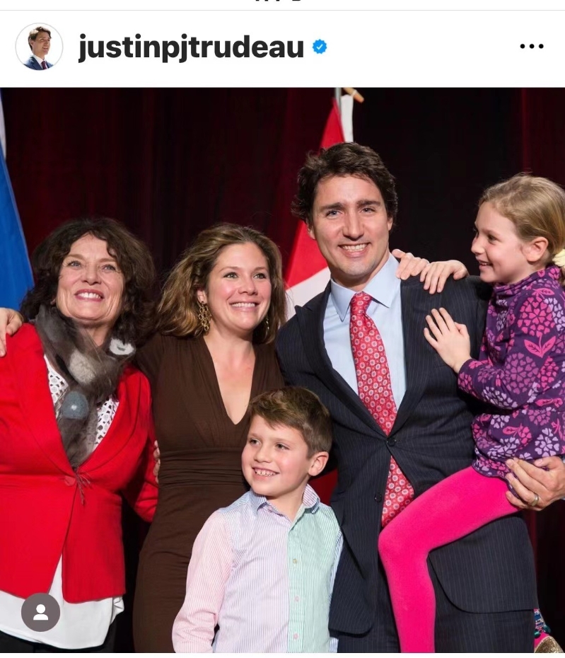 特魯多的Instagram5月14日(母親節)上載與蘇菲和母親的合影。