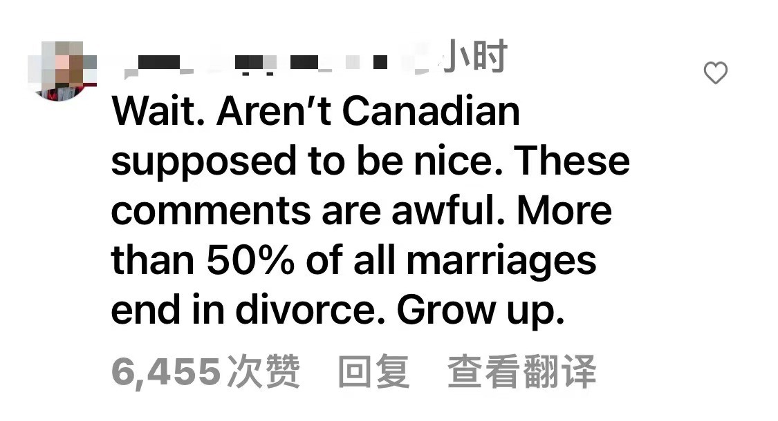 杜魯多Instagram的負評。 也有粉絲評論對此表達理解,其中一條獲得6455個讚的評論指出,超過50%的婚姻會以離婚告終,呼籲粉絲理性。