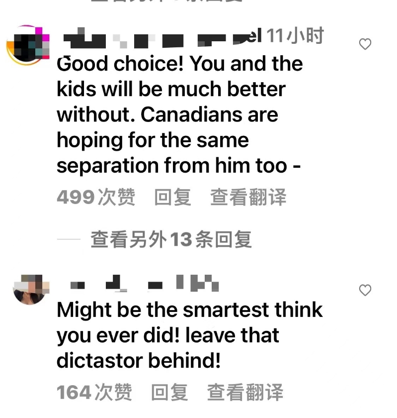 蘇菲Instagram網友評論截圖。 加拿大媒體報道稱,蘇菲·特魯多將搬到渥太華的單獨住所,但計劃在總理官邸與孩子共度大量時光,盡可能確保孩子們有正常的成長環境。截至7月31日,特魯多還戴著他的婚戒。(完) 【編輯:王軼南】