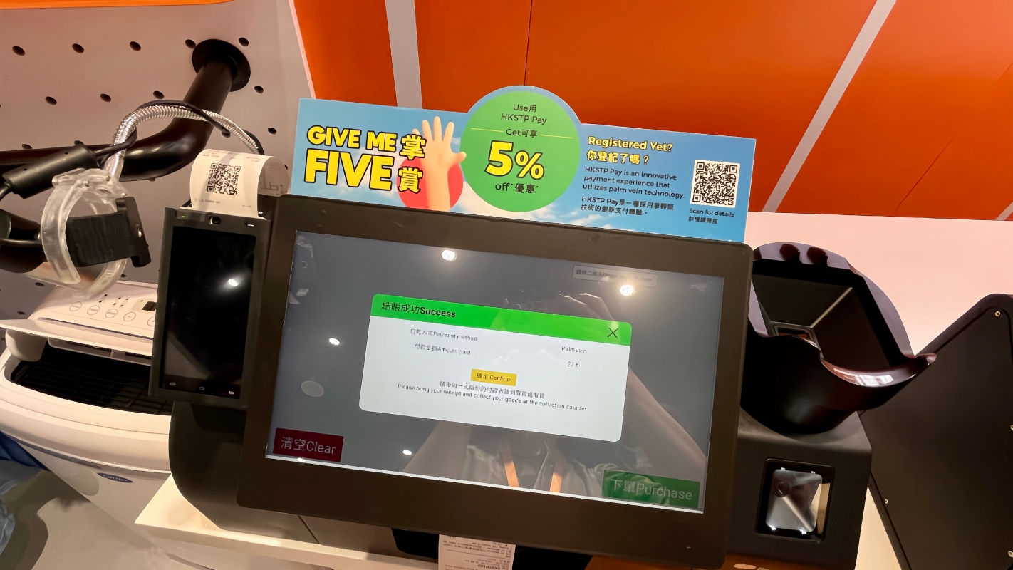 香港中通社圖片 該公司同時推出全港首個“掌靜脈”支付,市民須下載香港科技園軟件,並登記成新用戶,便可在創科市集內“刷掌”付款。
