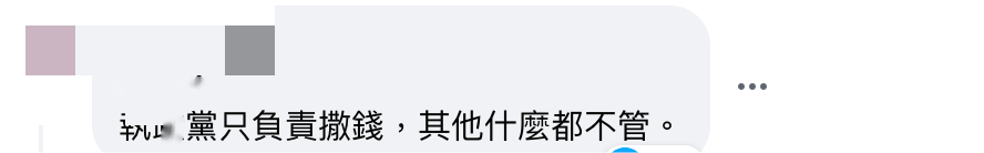 蔡英文資料圖。圖自台灣中時新聞網 據台灣聯合新聞網5日報道,台灣地區新北市議員葉元之表示,蔡英文“根本在說假話”,她沒有提到台當局還有未償還債務5萬億多元,只提到淨增加債務4000億元,“實際上是讓債務擴大,是話術”。 此外,國民黨“立法院”黨團總召4日舉行記者會稱民進黨“作假帳”,國民黨“立委”李德維表示,蔡英文2024年卸任下台後,台當局還要舉債4626億元,連下一任“政府”的錢都拿來花。民進黨當局是史上最會花錢的,如果不幸民進黨繼續“執政”,是否繼續提前花掉子子孫孫的錢?這不是民進黨的錢,是百姓辛苦繳納的稅金。 對此消息,有島內網民在台媒留言區輿論諷刺稱,“執政”黨只負責撒錢,其他什麼都不管。↓