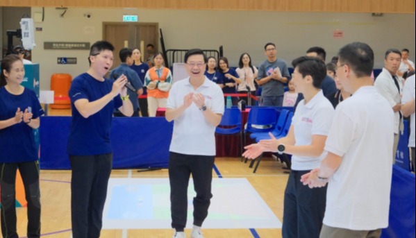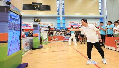 圖片來源:香港電台 今年主題是“身心力行體適能”,康文署下午2時至傍晚6點,將於全港各區指定體育館,舉辦多項體適能運動示範及同樂活動,讓巿民免費參與,鼓勵他們透過恆常參與體能活動,鍛鍊體魄、舒展身心。 其中主場館深水埗體育館,將設置電子戰繩和反應燈訓練器材,亦會有受青少年歡迎的新興運動,以及運動攀登等“城市運動”的體驗活動 。 特區行政長官李家超、文化體育及旅遊局局長楊潤雄,以及康文署長劉明光下午到深水埗體育館參加康體活動,又參觀陸上衝浪、運動攀登等多項城市運動場區。3人分別試玩輪椅劍擊的電子箭靶、電子戰繩等運動。 在大圍車公廟體育館,不少室內康樂設施,包括羽毛球場和乒乓球枱,使用率都達100%。職員指,所有場地預約時段幾乎爆滿。有市民表示,早在一周前已預訂羽毛球場,認為“全民運動日”機會難得,可與平日較少運動的家人一起舒展筋骨;亦有市民希望政府增設更多“全民運動日”,最好一年四次。(完) 【編輯:汪彥希】