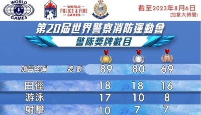 香港紀律部隊在世警會獲275面獎牌凱旋分享到:
