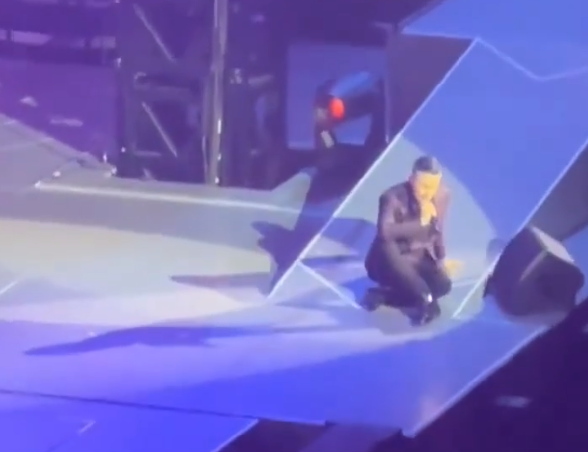 張學友近期舉行巡迴演唱會。香港中通社資料圖片 張學友昨晚在馬來西亞舉行演唱會,與管弦樂團合作演唱《只想一生跟你走》時,正在走向延伸舞台的他突然跌坐地上。不過表演未有中斷,後台工作人員一度企圖衝前攙扶,惟張學友已經撐起身軀,繼續演唱,非常專業。