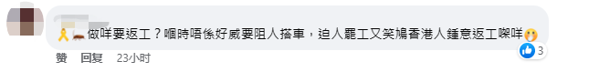 “手足”評論 至今還保留涉及“港獨”意味紋身的香港“黃絲”,被多間公司拒之門外後仍不思悔改,而是寄希望於“手足”的支援,其行為讓人又好氣又好笑! 隨後,此帖文及相關留言被香港網友截圖,並於網絡傳播,很快便引起圍觀和討論。 “幹嘛要返工(上班)?”“手足”求職心切的樣子,讓網友回憶起“修例風波”期間,“黃絲”妄圖癱瘓全港交通,迫使市民參與所謂的“三罷”活動的舊事,該網友直指,“手足” 如今的窘況與當初“好威”的樣子可謂形成鮮明對比!