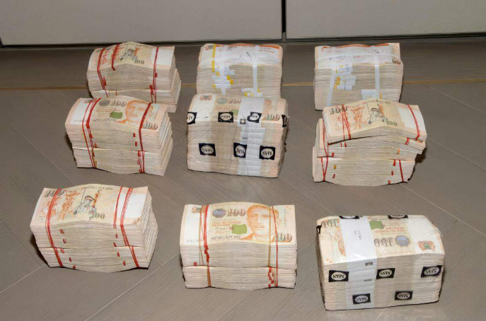 警方起獲包括外幣在內的2300萬餘元現金。新加坡警方供圖 另外,警方還查獲總值超過新幣2300萬元的外幣,逾250個名牌包及名錶,超過120台電腦、手機等電子裝置,逾270件珠寶,2塊金條及11份有關虛擬資產的文件。 新加坡商業事務局局長周祥泰說,當局嚴正看待通過新加坡金融系統洗黑錢的犯罪分子,將繼續與執法機構和金融情報單位合作,防止新加坡成為這類犯罪活動的據點。 新加坡金融管理局也發文告,表明不會容忍金融體系被濫用來進行非法活動。當局嚴厲看待這起案件。 根據新加坡法例,若偽造文件意圖欺騙罪罪成,將面臨最高10年監禁,外加罰款。(完) 【編輯:王軼南】