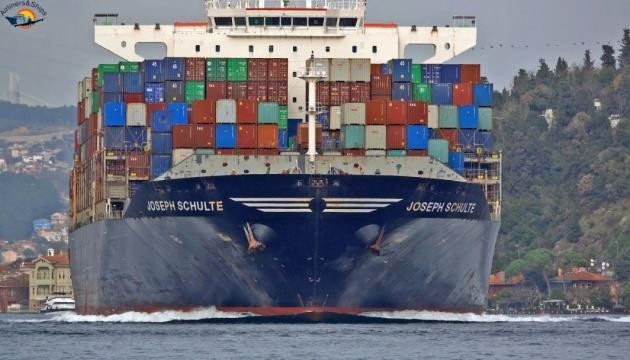 首艘民用貨輪經黑海人道走廊出港。圖源:烏通社 烏克蘭國家通訊社16日報道稱,一艘中國香港籍民用集裝箱貨船“JOSEPH SCHULTE”號已離開敖德薩港,并沿著黑海臨時走廊行駛,目前正在駛往伊斯坦布爾的途中。這艘貨輪裝載有2114個集裝箱,載重超過3萬噸。該貨輪自去年2月23日俄烏衝突爆發前一天以來,一直滯留在敖德薩港內長達18個月。