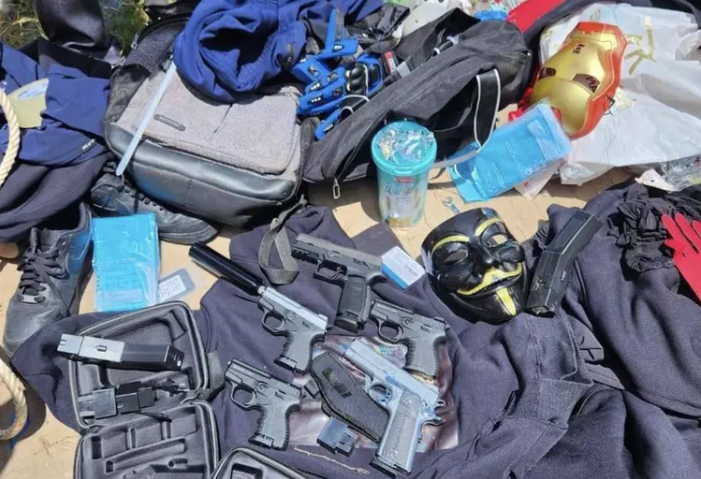 被歹徒丟棄的作案槍支和面具。圖源:柬中時報 蒙面武裝歹徒劫走囚犯之後將犯案過程中使用的車輛、槍械以及面具和服裝都丟棄在郊區。目前警方正在展開深入調查。(完) 【編輯:王軼南】