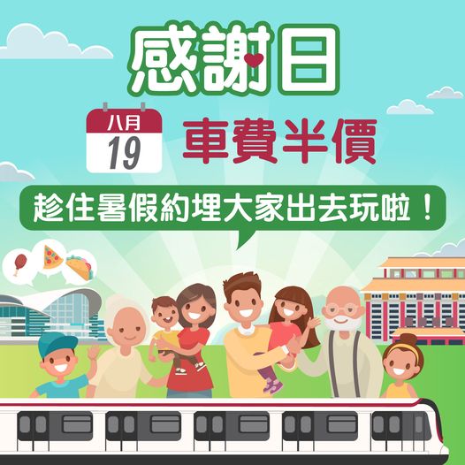 香港新聞網8月18日電 港鐵將於明日(19日)再次推半價乘車“感謝日”,無論是成人、學生、兒童還是老友記,當日只要憑八達通或二維碼乘搭港鐵、輕鐵及港鐵巴士,都可享有車費半價優惠。東鐵綫來往羅湖及落馬洲站的過境車程亦適用!