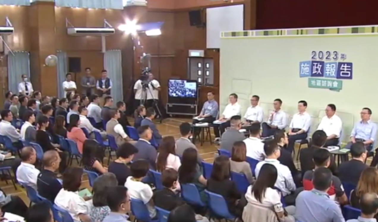 李家超出席2023年《施政報告》地區諮詢會。直播畫面截圖 一同出席今次地區諮詢會的司局級官員共有21位,包括政務司司長陳國基、財政司司長陳茂波、律政司司長林定國資深大律師、政務司副司長卓永興、財政司副司長黃偉綸、律政司副司長張國鈞、文化體育及旅遊局局長楊潤雄等。 在諮詢會上,有市民關注香港經濟問題、地區問題等。其中有市民提及,通關後不少市民北上消費,香港入夜後商場及街上人流大減,希望特區政府正視問題。李家超表示,香港在短期方面要“搞活夜市”,達致經濟效益,特區政府會積極推動相關活動;而在長遠方面需要優化旅遊業,因應遊客改變旅遊習慣,要推動特色路線,包括文化、美食、古蹟等。他強調,特區政府會繼續對外推廣香港,又預告新一份施政報告將有關於人才及旅遊等政策推出。 至於地區問題方面,李家超指出,地區問題多變,每區的處理方法都不同,但在完善地區治理體系後能夠統籌不同政府部門處理地區問題。加上未來新組成的區議會,以及地區治理專隊的兩個組織,相信相關措施能夠落實得更到位。另外,李家超回應房屋發展方面時,指出特區政府已經縮短建屋流程,但仍然需要一段時間,已經透過發展過渡性房屋及簡約公屋,應付緊急房屋需求。而未來亦有大量的規劃工作,包括發展交椅洲人工島。 李家超表示,他與團隊在今日的地區諮詢會中與市民有很好的交流,很有收獲,聽取了不同的寶貴意見。也深深感受到大家對香港這個家園的深厚感情,和對共建更美好香港的熱切期盼。為市民解決日常生活遇到的問題,讓市民過得幸福,是他和團隊的責任,也是他們共同奮鬥的目標。
