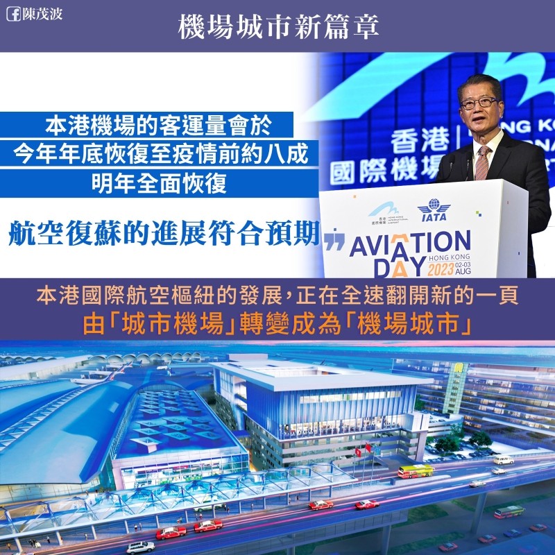 陳茂波網誌圖片 陳茂波指,政府正全力實踐“機場城市”願景,其中佔地25公頃的SKYCITY(航天城)發展項目,是重要把手。總樓面面積達380萬平方呎的11 SKIES是SKYCITY的亮點,將成為全港最大的綜合商業發展項目;提供系列新穎娛樂、零售和餐飲選擇,以及商業辦公樓面,以發展醫療、保健、金融等服務。此外,亞洲博覽館也將進行二期擴建工程,落成後將提供逾2萬座位的先進舞台場館和更多展覽設施。 陳茂波說,機場三跑系統將於明年底竣工,屆時機場可處理客運量顯著提升約50%,每年接待1.2億人次。機場的“海天中轉大樓”將於短期內啟用,日後經港珠澳大橋前往香港國際機場轉機的過境乘客,可直達機場禁區前往登機閘口,無需在香港再辦理出入境手續。亦會進一步擴展機場在內地城市的候機網絡,將由現時19個增加至30個。 另外,他表示香港航空復甦進展符合預期。政府早前提出的運輸業輸入勞工計劃中,航空業第一輪申請已有28家公司獲批,合共2800多個名額,涵蓋地勤人員、機坪服務員、飛機維修技工等共10個工種,預計最早可在今年10月抵港。 他並透露,目前香港國際機場共有約110家航空公司營運來往全球165個目的地的航班,約恢復到疫情前的75%,每日客運量和航班升降量,亦已分別恢復至疫情前的65%和70%。機管局預計香港機場的客運量會於今年年底恢復至疫情前約八成。(完) 【編輯:李冉】