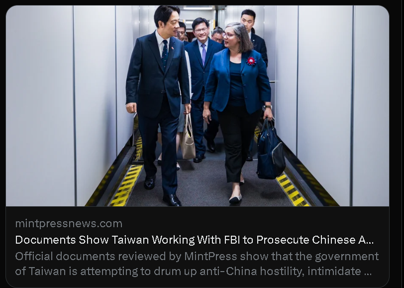 美媒曝光了一個台灣當局與美國FBI的惡毒秘密香港新聞網8月23日電 近日,美國左翼獨立媒體MintPressNews曝光了一個台灣當局與美國聯邦調查局(FBI)之間的大秘密,稱台灣當局一直在通過諸如“台北經濟文化代表處”這樣的駐美機構與FBI合作,對一些對華友善的人——尤其是美籍華人,進行政治迫害。而且,這家媒體還稱他們拿到了來自台灣當局內部的材料,可以佐證這一情況。