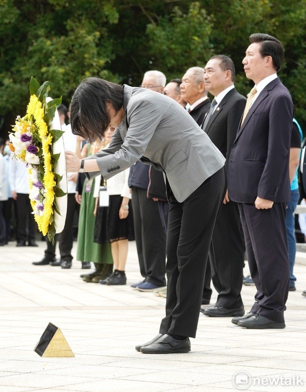蔡英文在金門太武山公墓獻花,侯友宜同框。圖源:newtalk傳媒 蔡英文23日前往金門太武山公墓主持八二三公祭暨追思活動,與侯友宜罕見同台,兩人有簡單致意交談,但均未向在場傳媒透露內容。 值得注意的是,蔡英文曾於2019年、2020年赴金門出席8.23紀念活動,但去年8.23紀念日並沒有到金門,今年則特地安排前往,又與競逐大選的候選人同場互動,有著濃濃的選戰味道。台媒更高度關注郭台銘會否選在8.23紀念日這天宣佈參選。 侯郭二人分別提出金門政見 提前一天抵達金門的侯友誼和郭台銘,分別提出各自的金門政見。 侯友宜22日上午一抵達金門,先與多位退役將領見面,隨後宣布金門政見——主張將金門打造成“兩岸經貿示範區”,並提出支持金廈大橋公投、推動連接金廈兩地的電力和天然氣等6項主張。 郭台銘22日在主流民意大聯盟活動上發表《金門和平倡議》,強調和平不能停留在想像與口號,需要有穩健的規劃與具體的執行方案,他承諾將在初期投入2000萬美元(約1.56億港元)成立金門和平倡議基金會,以及逐步落實建立常設“兩岸和平協商辦公室”、“兩岸和平戰略研究院”等八大事項。 侯郭二人分別許願和平 侯友宜在說明金門政見後,前往金門和平紀念園區敲響和平鐘,並許下3個願望,分別為“台海安定、金門發展”、“台灣安全、人民安心”、“兩岸和平、永無戰爭”。侯友宜23日一早還到“浯島城隍廟”上香祈福。