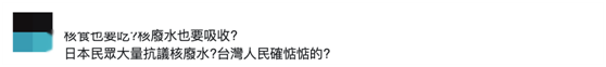 還有網民質疑稱,“(台灣)核食也要吃?核污染水也要吸收?日本民眾大量抗議核污水?台灣人民確惦惦(不發聲)?”