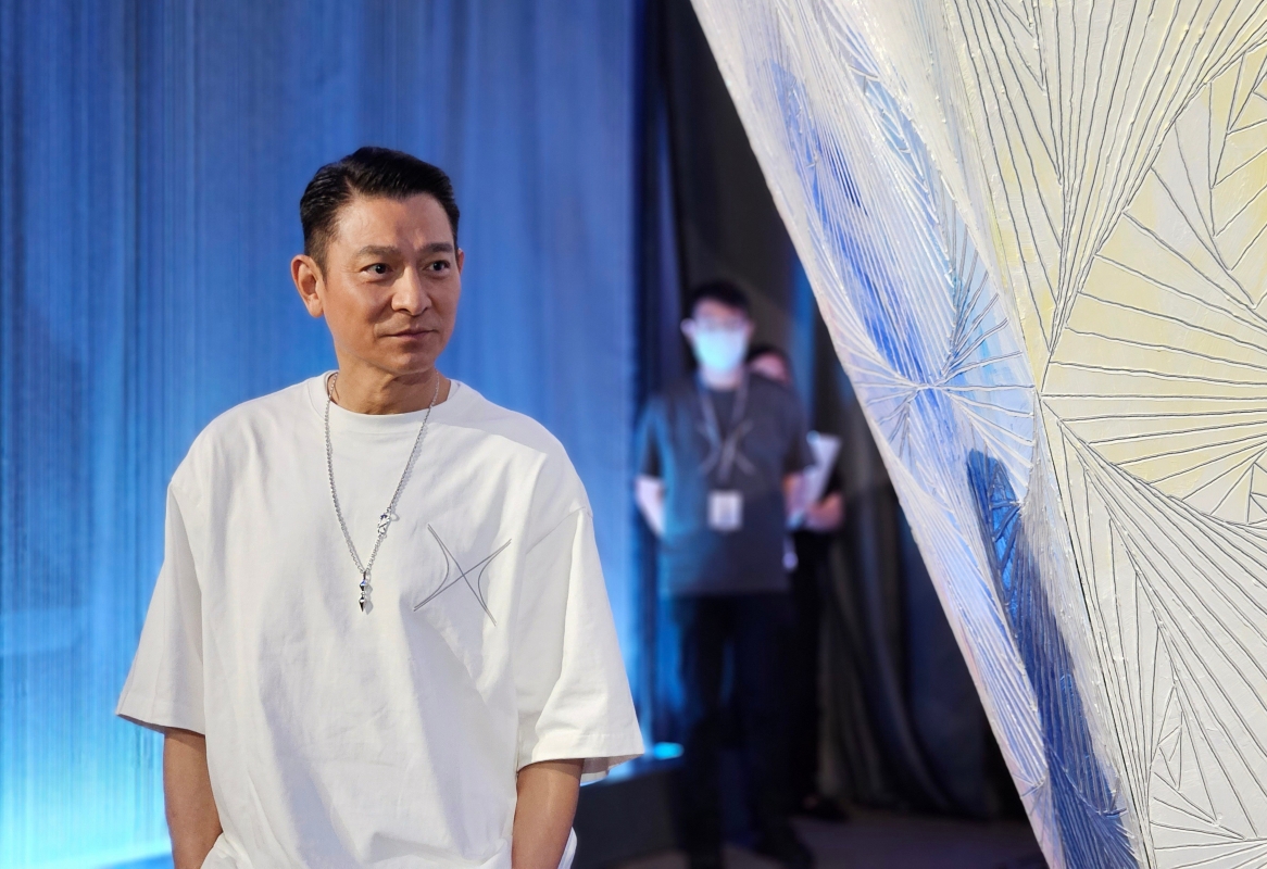 劉德華形容辦藝術展“心情猶如重回17歲初出道時的衝勁”。(香港中通社記者 黃璇攝) 心情猶如重回17歲出道時的衝勁 眾人過去幾個月費盡心思創作,這天終於見證“小朋友”出世,心情都非常興奮,劉德華於展覽開幕當日親自介紹場內展品,並接受傳媒訪問。他將自己的經典電影,以及演唱會,注入各種藝術創作,更驚喜的是,這次展覽難得展出他與愛女Hanna(劉向蕙)的繪畫作品。