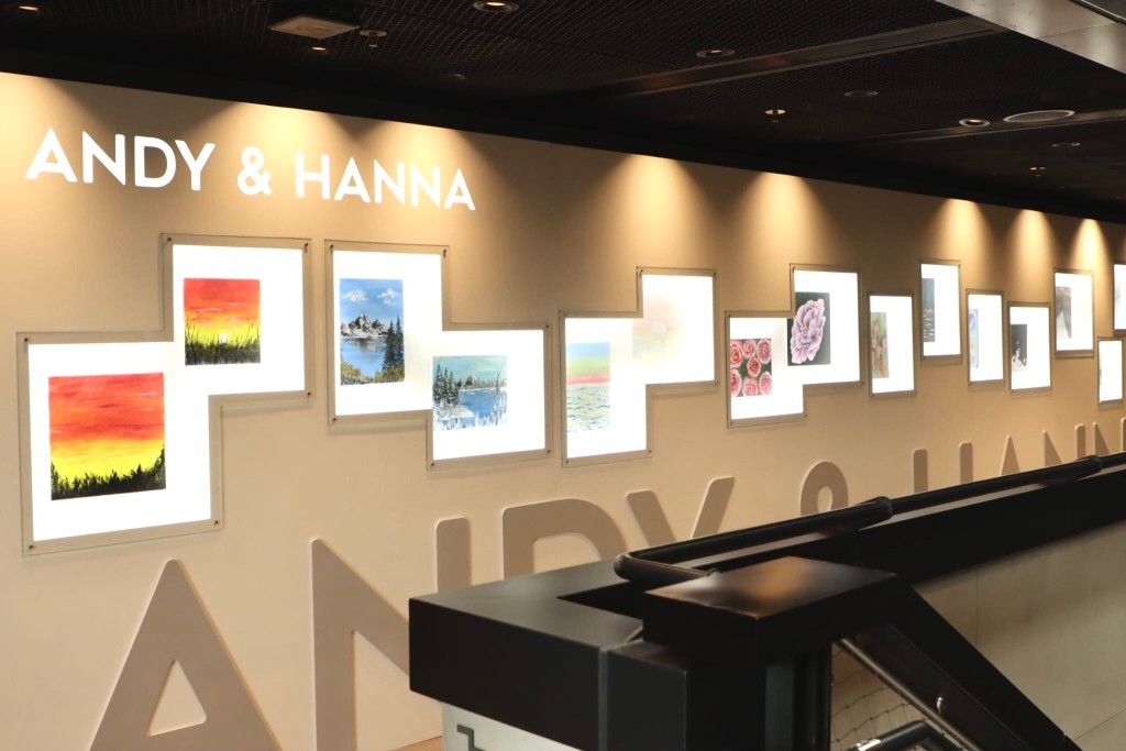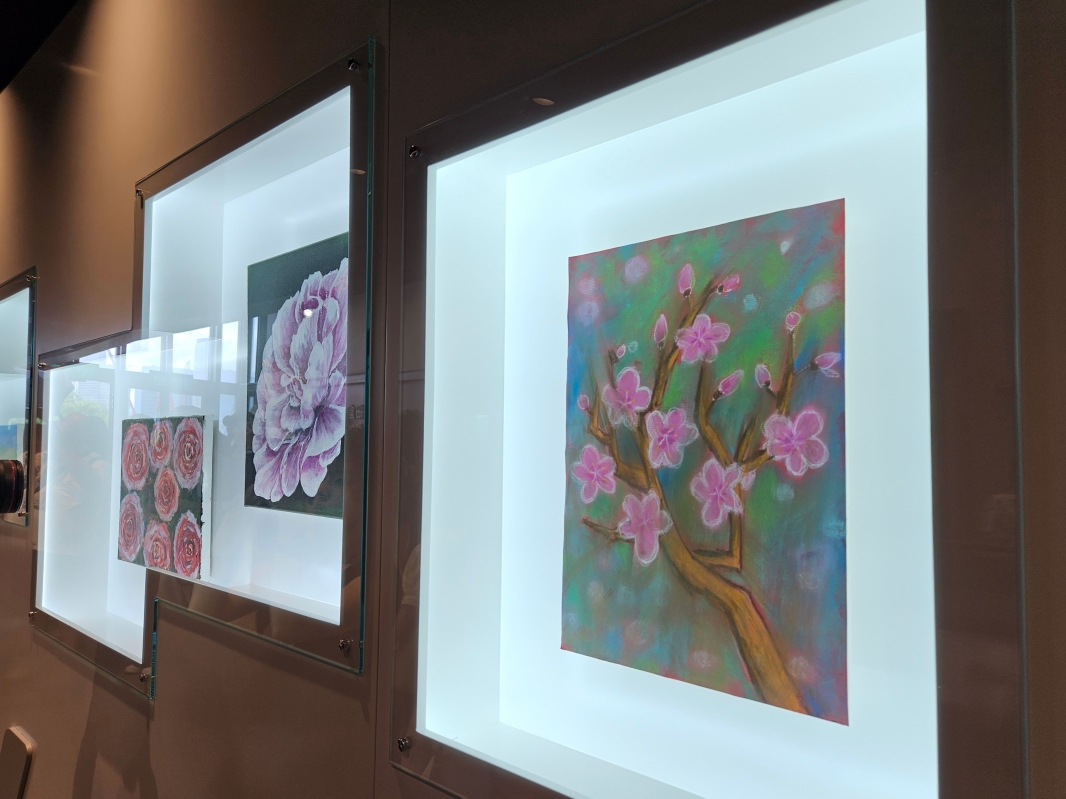 走廊上展示了劉德華與女兒的繪畫習作。這部分展區命名為“念 Honey”。(香港中通社記者 黃璇攝) 劉德華稱,“女兒逐漸長大,我和她之間發現各自對事物有不同的見解。正好疫情期間學校只教網課,而網課主要教孩子做運動、畫畫、做手工藝,於是疫情期間我就陪著她畫畫,這些其實都是她疫情期間的功課。久而久之發現我們在繪畫上有共同的話題,倆人的溝通方法有所改善。”他回想愛女小時候已被發現有繪畫天分,展品中有幅蘋果畫是女兒的第一幅作品,“我帶她去找老師學畫畫,她畫完這幅蘋果畫,老師叫我要好好培養她。”