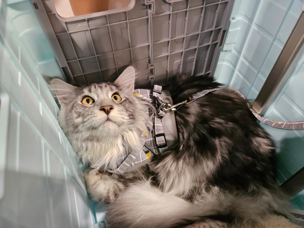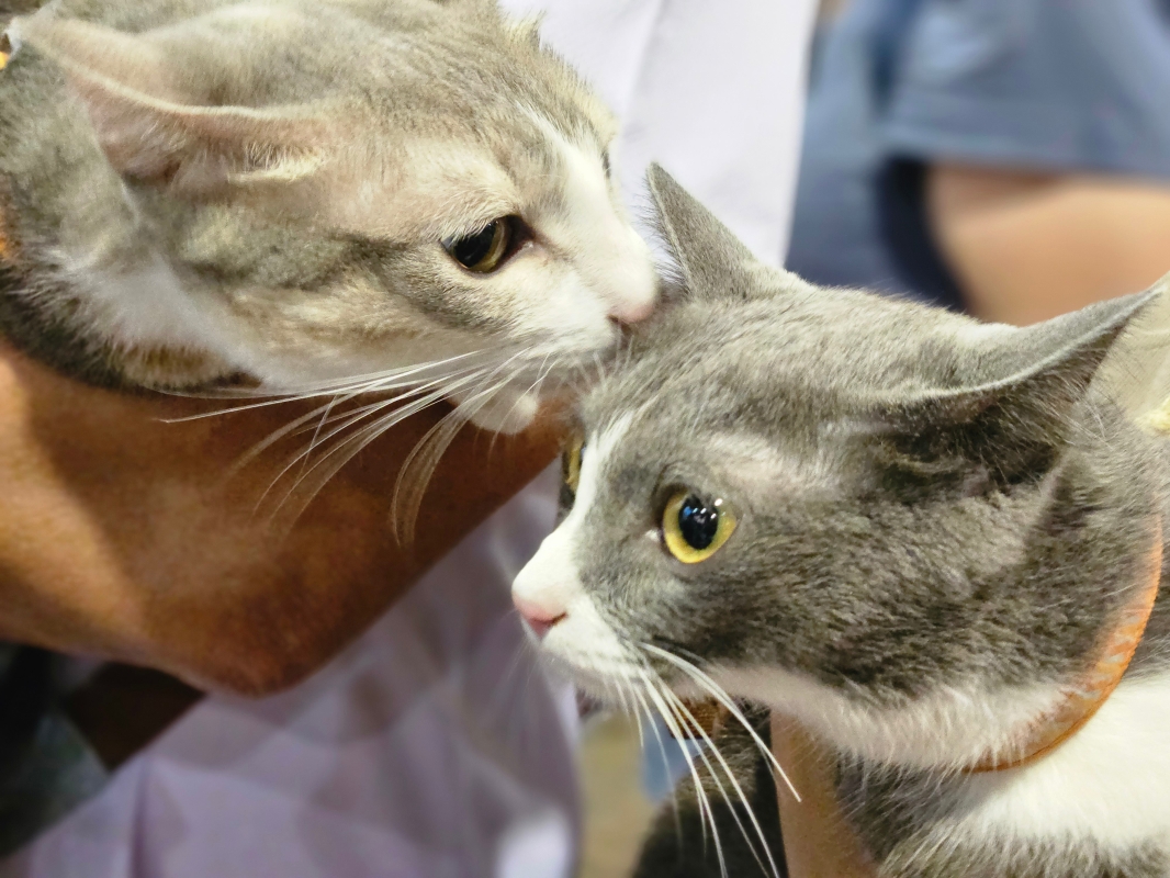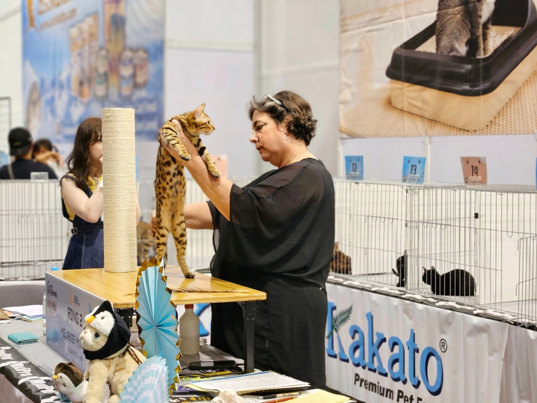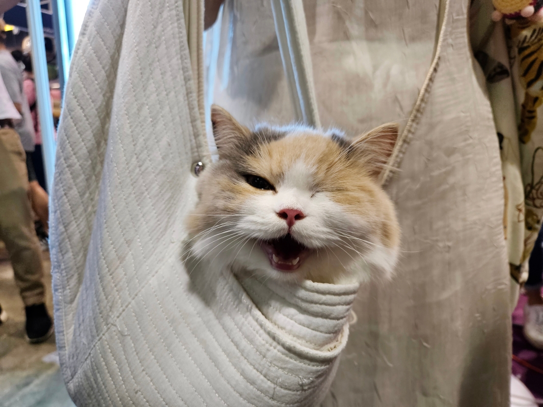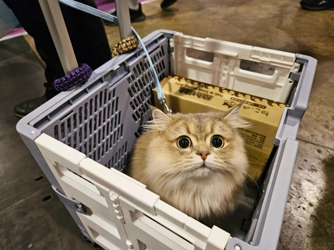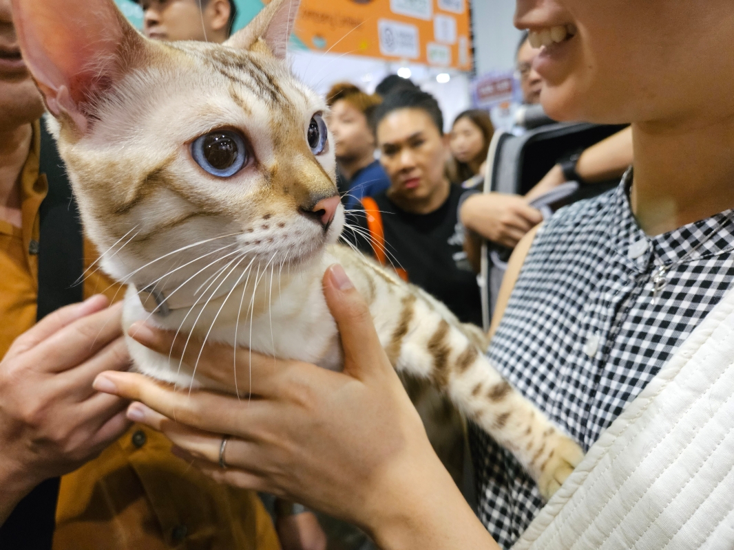 香港新聞網8月26日電(記者 黃璇) 一連3日的“香港貓迷博覽會2023”昨日(25日)起在灣仔會展舉行,是首屆以貓為主題的展覽會。今日星期六,現場人流擁擠,展覽攤位除提供一般貓糧,更有寵物攝影服務、保健產品、文創市集、保險計劃、衣物服飾等。有寵物移民公司表示,寵物移民和旅行近年趨普及,市民亦更願意投資在“心肝寶貝”身上。主辦方表示今次有逾130個參展商,估計整個活動入場多達15萬人次,是亞洲最大的貓咪主題博覽。至今日下午6時許,仍不斷有人排隊購票入場。 貓迷博覽會上,不少人抱着寵物貓一同逛展會(註:香港貓迷博覽會只接受貓隻進場,不可攜帶其他動物),吸引眾多遊人拍攝。牠們有些極其“社恐”,有些卻頗為“社牛”,不膽怯任人摸。一起跟隨香港新聞網的鏡頭來看看這些可愛的喵星人吧!