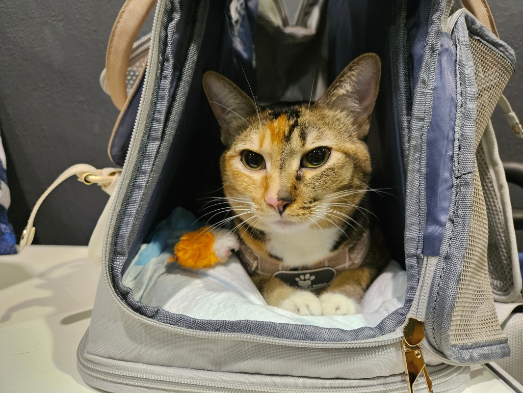 貓主人帶貓咪逛展會,吸引途人拍照。(香港中通社記者 黃璇攝) 攜帶貓隻入場指引 入場貓隻必須持有及出示以下證明方可入場: · 針咭(需清楚顯示未過期的F3/F4/F5疫苗證明) · 所有攜帶貓隻進場人士必須於進場前主動向在場職員申報並出示已注射疫苗之針咭。如未能出示已注射疫苗之針咭,該攜貓人士及貓隻將會被拒絕進場。 · 所有入場貓隻必須時刻以貓繩牽引,或放置於寵物專用的籠/袋/車中並繫上牽引繩。 · 建議為經常外出的貓隻注射包含貓白血病疫苗的五合一疫苗(F5)及狂犬病/瘋狗症疫苗。 · 嚴禁攜帶6個月或以下的貓隻入場。 【編輯:黃璇】
