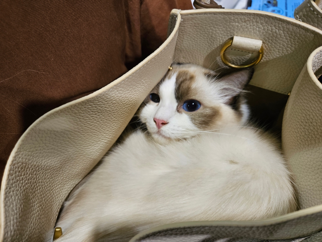 “快看,手袋裡長出貓了!”(香港中通社記者 黃璇攝)